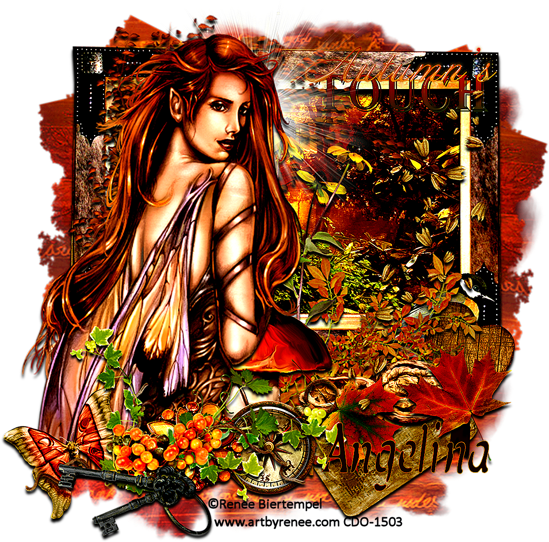 Another post for today. :) ... I used two beautiful PTU kits by Gothic Inspirations (http://gothicinspirations.blogspot.com/) and KatNKDA (http://nkdigitalart.blogspot.com/) Gothic Inspirations: "Forever Fall" and KatNKDA: "Say Goodbye To Your Nuts" Lol. :) Artwork is by Renee Biertemple: "Wood Faery" I used two masks from Nik's Nik Naks. You can find the tut HERE